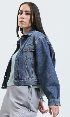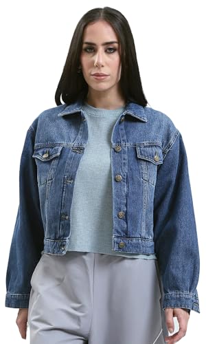Ravin - جاكيت قصير للنساء بقصة عادية ولون سادة بلون أزرق داكن من ريفين