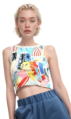 Ravin - ريفين توب كات عصري مضلع متعدد الالوان للنساء - مرقش اوف وايت