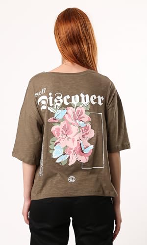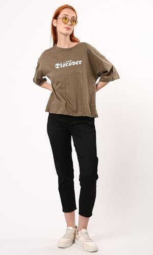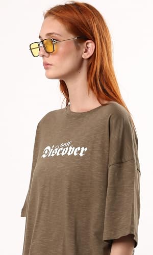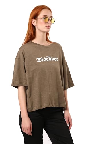 Ravin - تيشرت عصري مريح للنساء مطبوع عليه "Self Discover" بلون موكا مرقش من ريفين