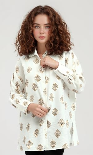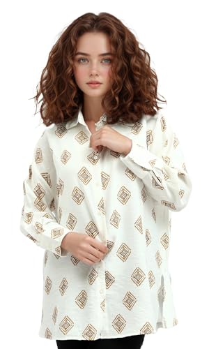 Ravin - قميص عصري للنساء بأكمام طويلة وطباعة نمطية من ريفين
