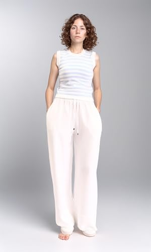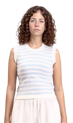 Ravin - ريفين بلوزة مخططة بدون اكمام سهلة الارتداء للنساء - ازرق فاتح وابيض - جاكيت R213235 (عبوة من قطعة واحدة)