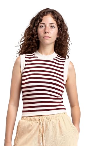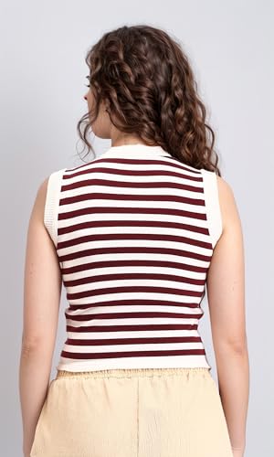 Ravin - ريفين توب مخطط بدون اكمام سهل الارتداء للنساء - نبيتي وابيض - جاكيت R213236 (عبوة من قطعة واحدة)