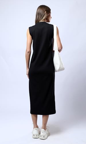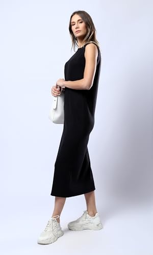 Ravin - فستان حريمي من ريفين متوسط الطول سادة بدون أكمام - فستان كاجوال أسود