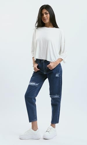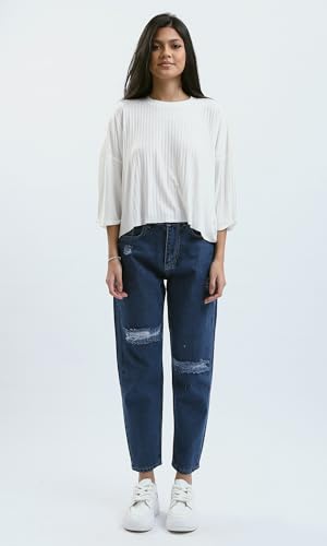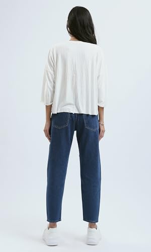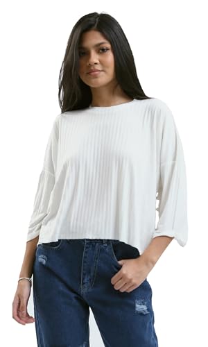 Ravin - توب فضفاض من القطن المضلع سهل الارتداء للنساء من ريفين - اوف وايت