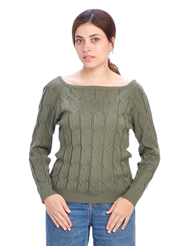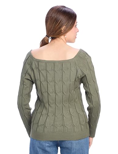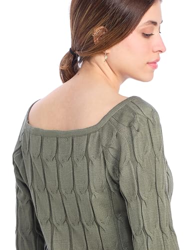 Ravin - ريفين بلوفر سهل الارتداء باكمام طويلة للنساء - بلوفر زيتي للنساء