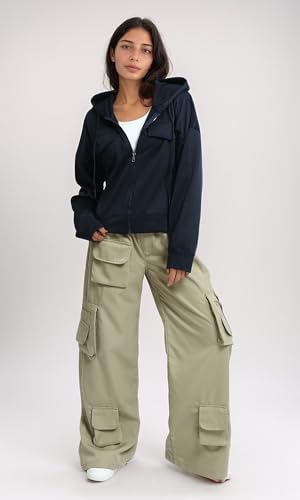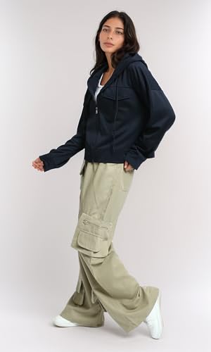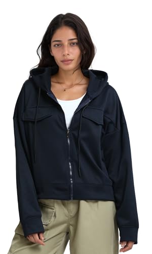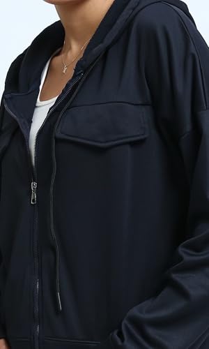 Ravin - سويت شيرت سادة طويل ومريح بغطاء للرأس وجيوب أمامية للنساء من ريفين- أزرق كحلي