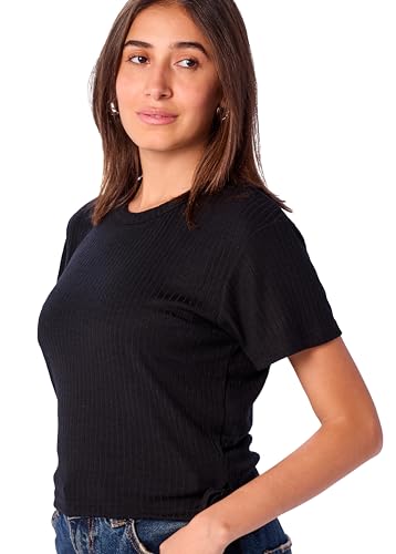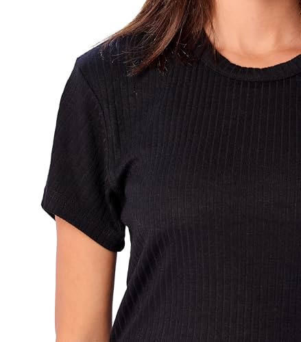 Ravin - ريفين تي شيرت قصير سادة بقصة عادية للنساء بلون اسود عصري