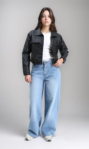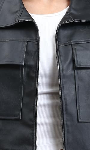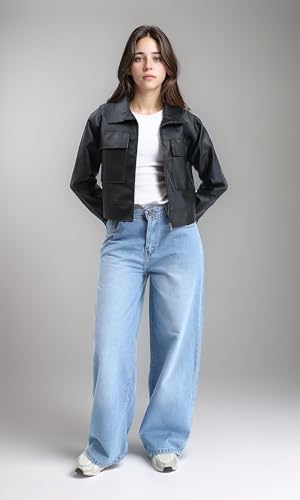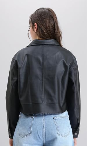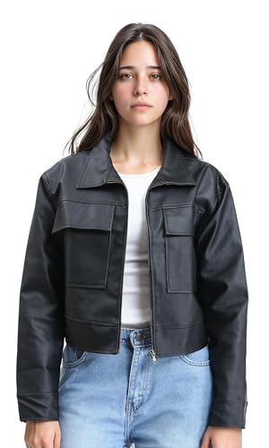 Ravin - جاكيت جلد قصير R212788 للنساء بسوسته من ريفين، لون أسود (عبوة من قطعة واحدة)