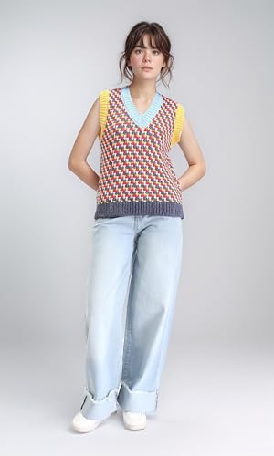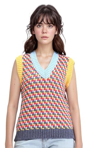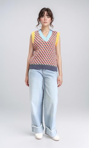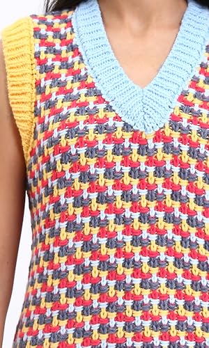 RAVIN - ريفين فيست منسوج ملون سهل الارتداء برقبة شكل V للنساء - احمر واصفر - R210945 (عبوة من قطعة واحدة)