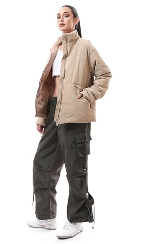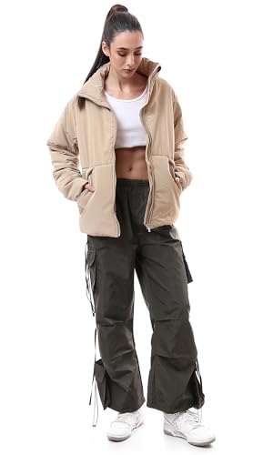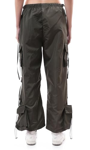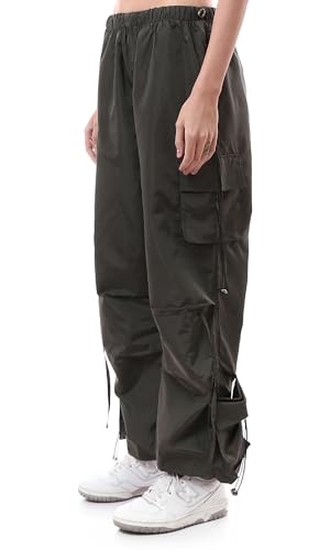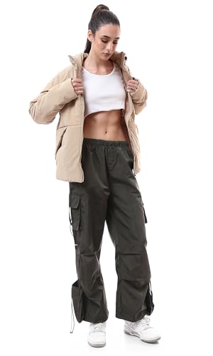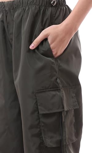 Ravin - ريفين بنطلون كارجو خفيف الوزن بارجل واسعة للنساء بلون زيتي داكن