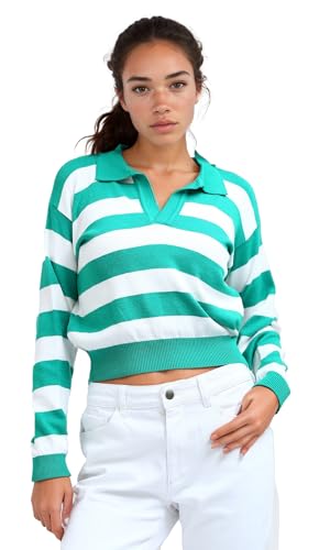 Ravin - ريفين بلوفر شتوي منسوج مخطط باكمام طويلة للنساء - بلوفر اخضر وابيض للنساء