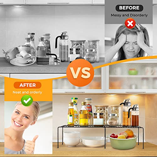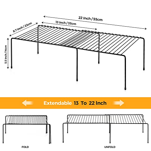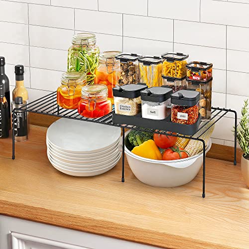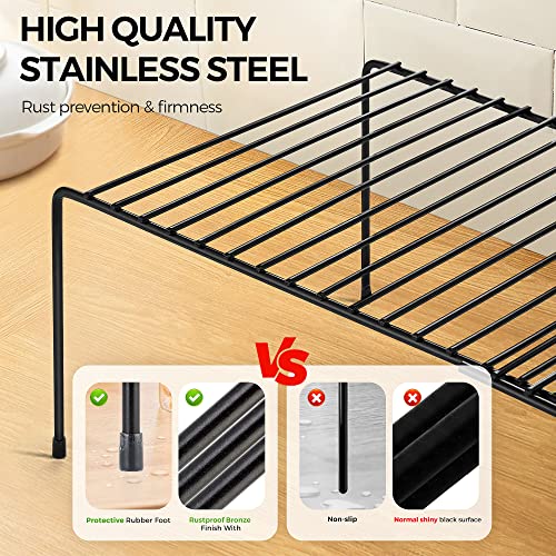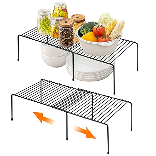 Ravinte - منظم رفوف الفريزر قابل للتمدد بتصميم عملي مصنوع من سلك معدني مقاوم للصدأ من رافنتي، رف تخزين قابل للتعديل لتنظيم دولاب المطبخ، الثلاجة، المخزن، الدولاب، أو سطح الترابيزة، أسود، قطعتان