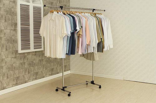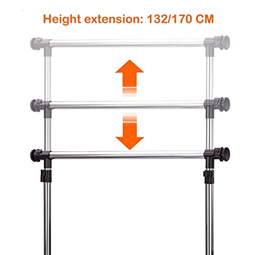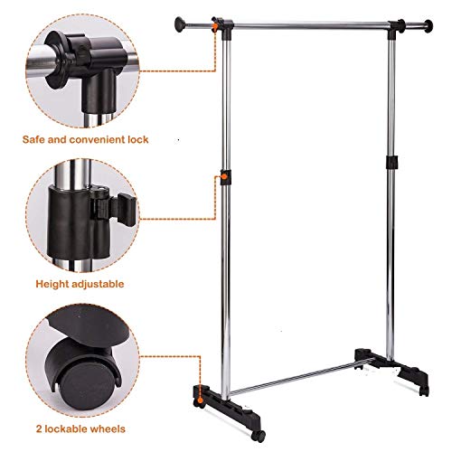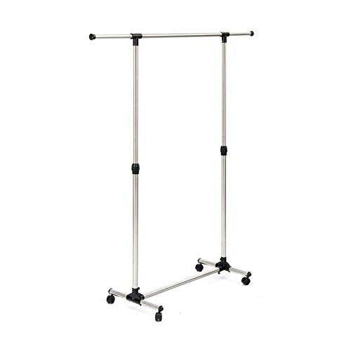 Spaceshoop - حامل لتعليق الملابس مصنوع من الستانلس ستيل بقضيب واحد تلسكوبي متحرك ومحمول وقابل للتعديل مع عجلات رافيزا متعدد الألوان قطعة واحدة