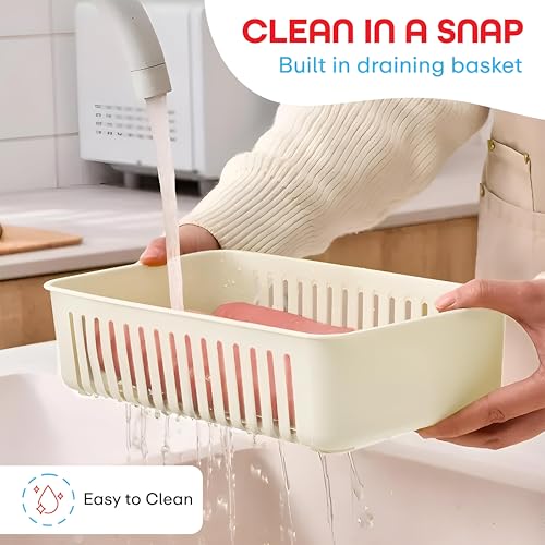 • متعددة الاستخدامات ومتعددة الوظائف، تأتي حاويات الفاكهة والخضروات هذه مع فتحات تصريف كبيرة وميزات تسجيل التاريخ وعناصر تصميم مبتكرة، مما يجعلها مثالية لإدارة المكونات المختلفة دون عناء، سواء في المنزل أو في المطاعم أو في المساحات المشتركة.