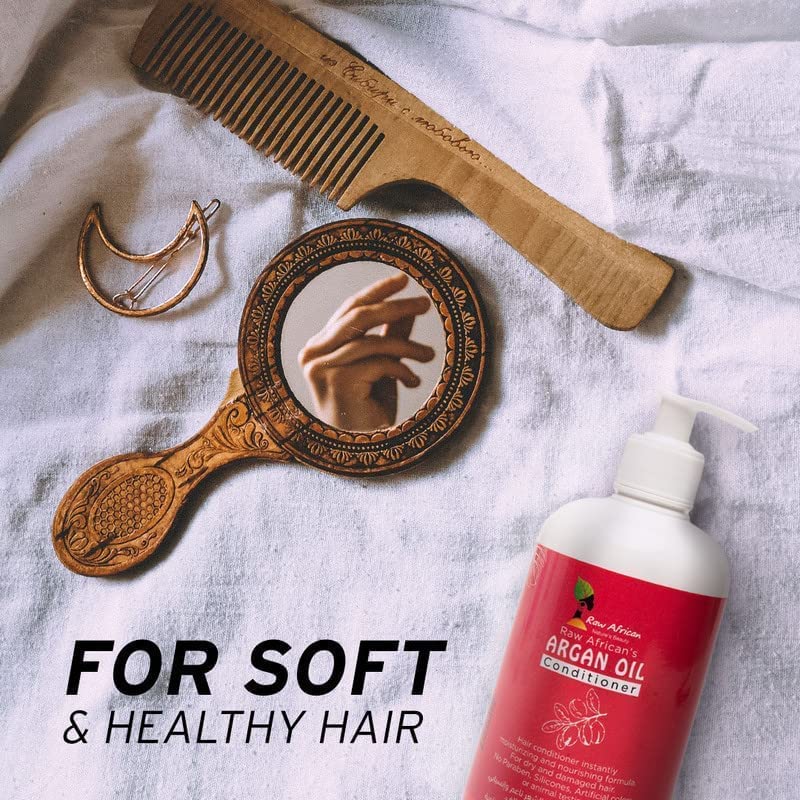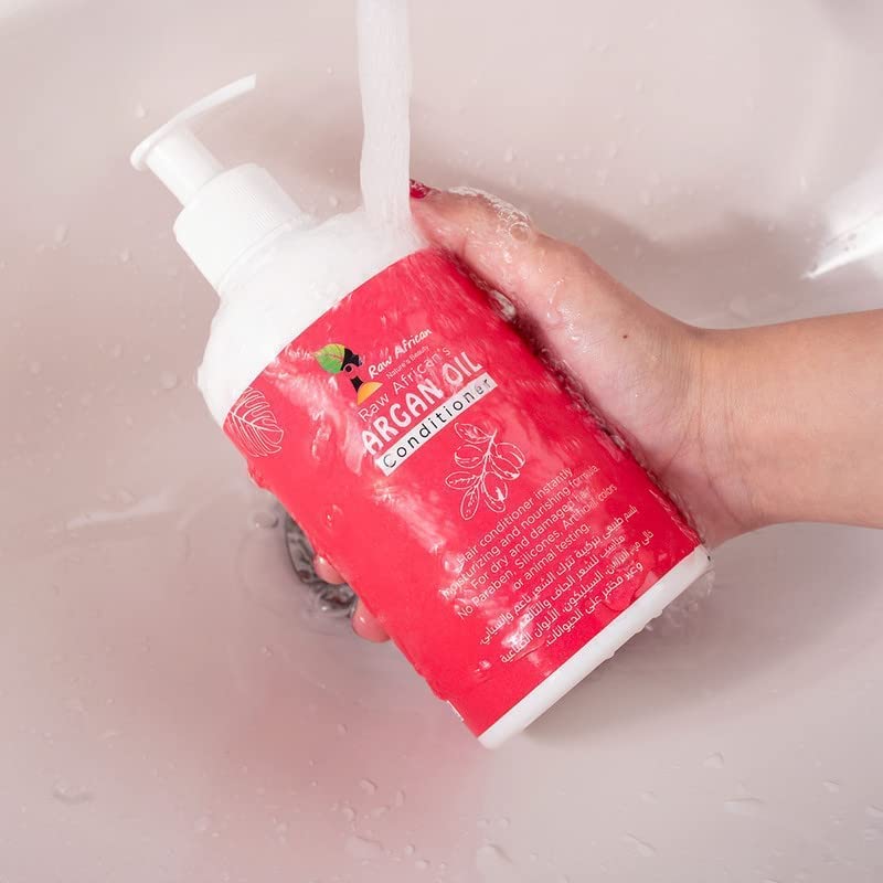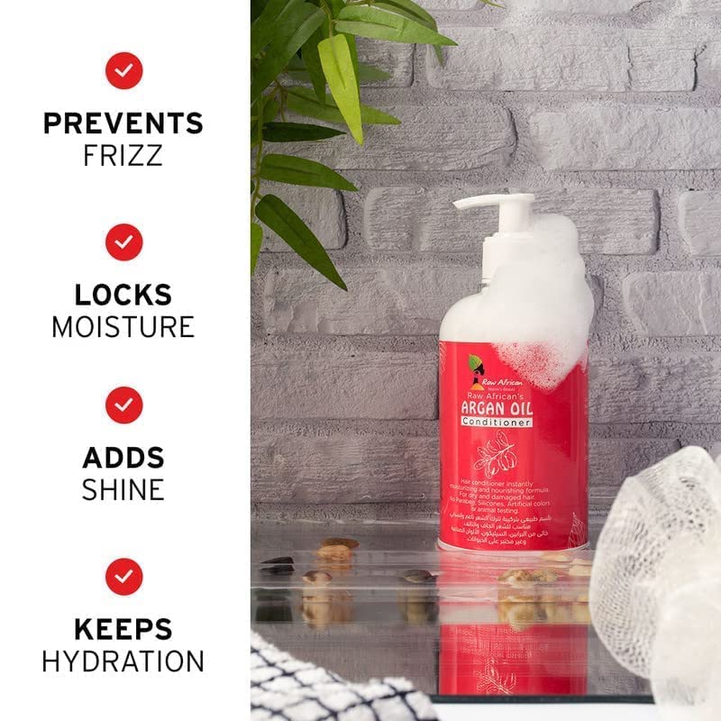 raw african - سائل من رو أفريكان للشعر الجاف 500 مل للتحكم في الفريز بزيت الأرغان، خالي من الكبريتات والبارابين مع مكونات طبيعية مرطبة ومضادة للتجعد