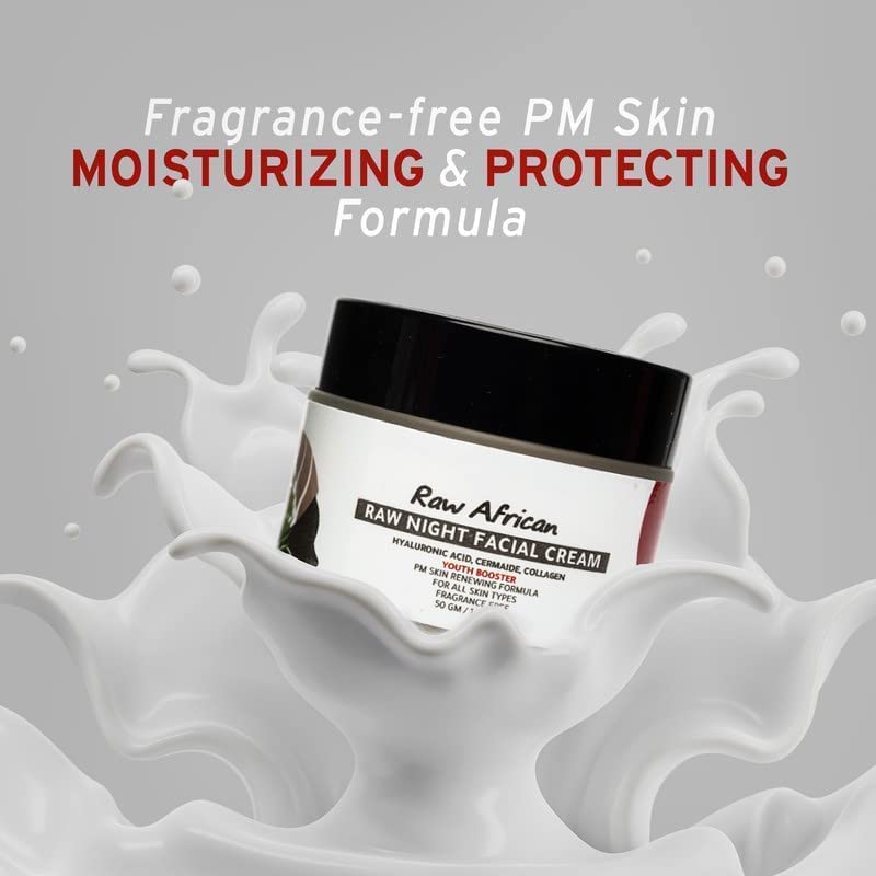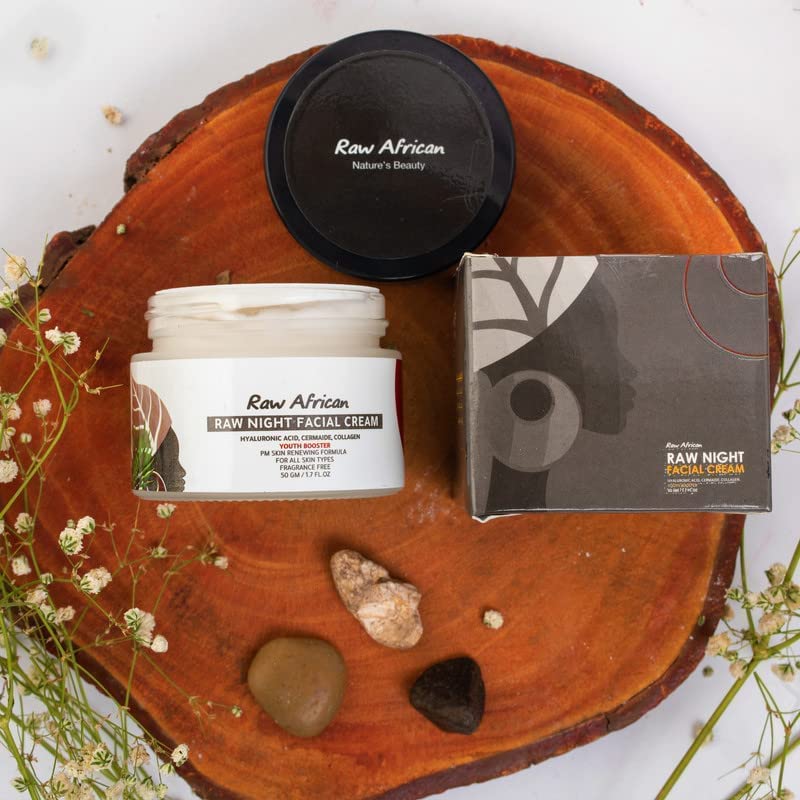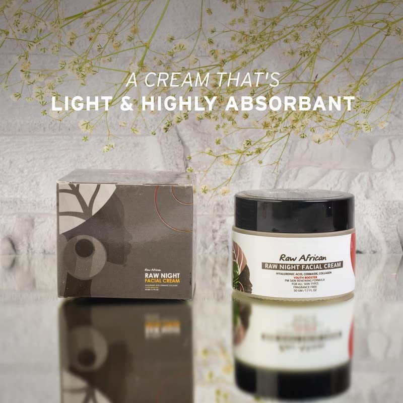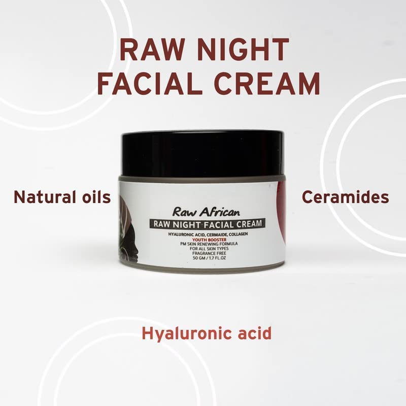raw african - كريم ليلي للوجه من أفريقي خام لتحسين مرونة البشرة والترطيب، مناسب لجميع أنواع البشرة، 50 جرام