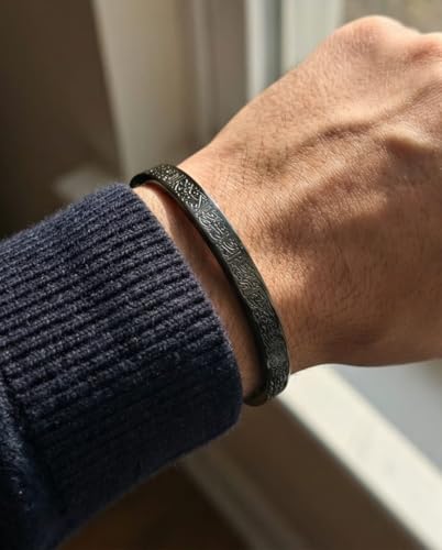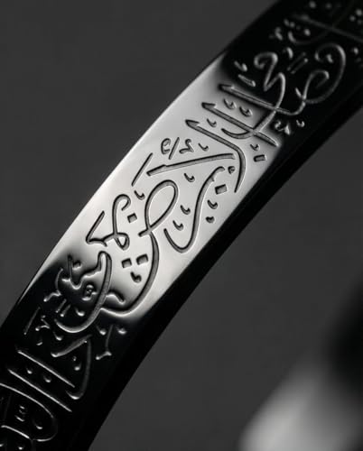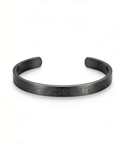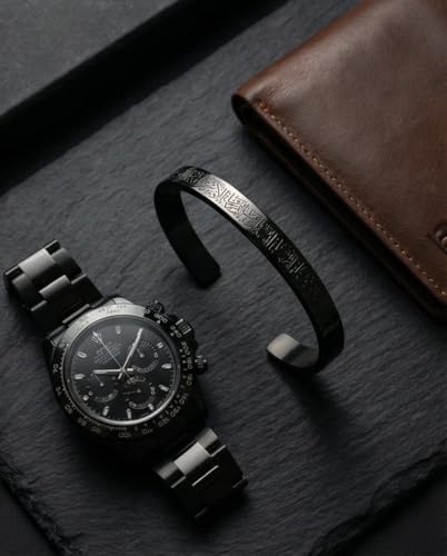 Rawnq - سوار اسلامي للرجال من راونكيو - سوار عريض من الستانلس ستيل باللونين الاسود والابيض مع خط عربي، هدية مجوهرات اسلامية للرجال من الكرسي