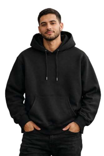 Generic - RAXEL هودي كلاسيكي قطني أسود، تصميم عصري مع جيب كنغر، أكمام طويلة، مناسب للجنسين، قماش متوسط الوزن، مقاس XL