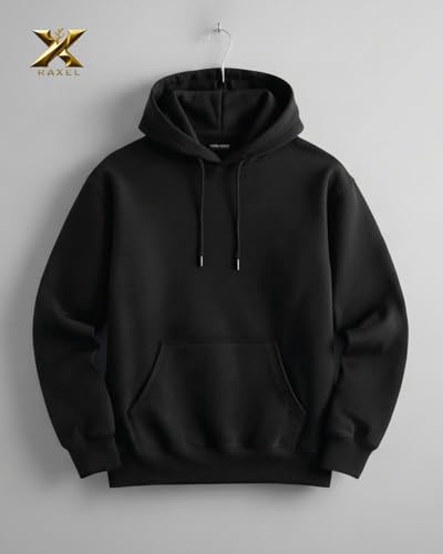 Generic - رآكسل هودي قطن أسود كلاسيكي، سترة رياضية بغطاء للرأس