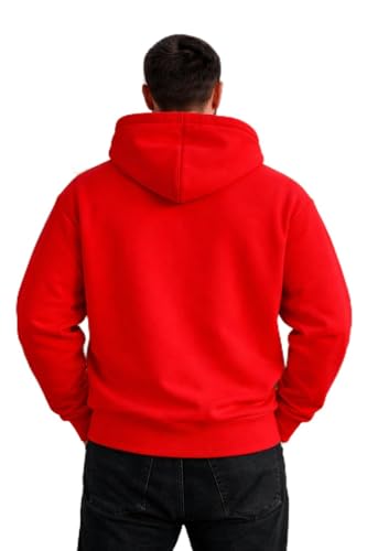 Generic - RAXEL هودي قطني كلاسيكي أحمر، سترة رياضية بغطاء رأس مريحة، قماش متوسط الوزن، تصميم عصري مع جيب كنغر أمامي، مناسب للرياضة والارتداء اليومي