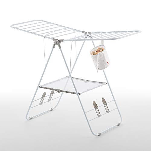 Rayen - شنطة مشابك من راين | مقاومة للماء ومتينة | مجموعة ممتازة | تحمل 150 مشبك ملابس | تتميز بحبل ولاصق فيلكرو لتأمين الاغلاق | بابعاد 18 × 15 سم، أبيض، بلاستيك