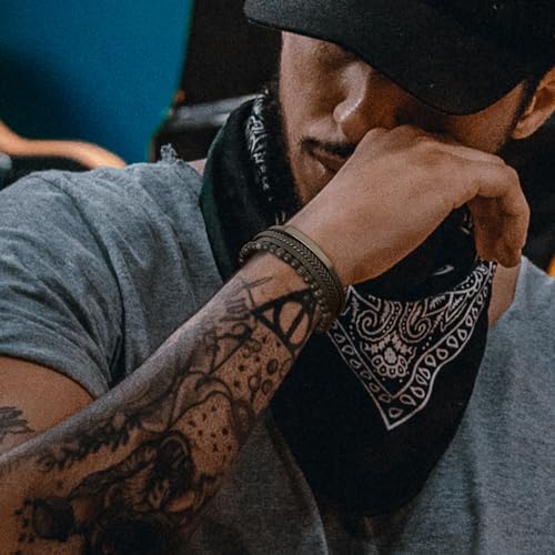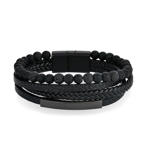 Raymard - سوار رجالي من رايمارد بتصميم عين النمر من الزجاج البركاني الاسود وحجر اللازورد وحجر اللازورد، سوار مضفر ملتف من الجلد للرجال، مشبك من الستانلس ستيل - لافا روك