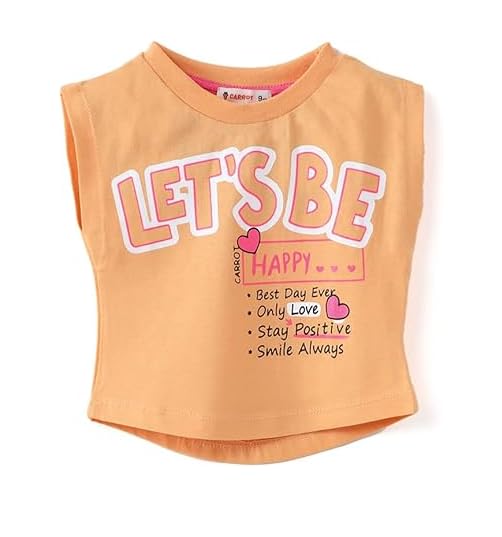 Generic - توب قطن بدون أكمام للبنات الصغيرات بتصميم عبارة Remondos Let?s Be Happy