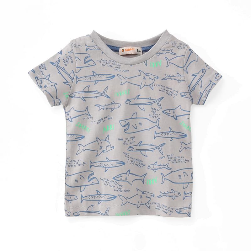 Generic - تيشرت قطن بطبعة سمكة قرش للأولاد البيبي من ريموندوس، رمادي فاتح