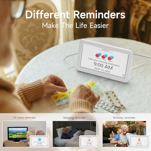 Raynic - ساعة مع تقويم من راينيك، ساعة تقويم رقمية مع 12 تصميم للواجهة، 20 منبه، 20 تذكير، تعتيم شبه تلقائي، نظام 12/24 ساعة، تعديل تلقائي للتوقيت الصيفي، لسطح المكتب والمكتب والطلاب (لون أبيض، 7 بوصة)