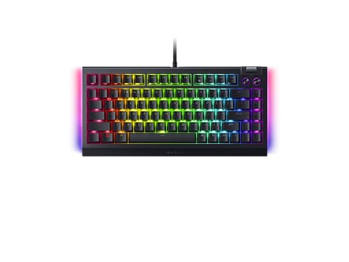 Razer - لوحة مفاتيح ألعاب ميكانيكية قابلة للتبديل السريع 75% بلاك ويدو V4 من ريزر (تصميم صغير بنسبة 75%، إضاءة سفلية على جانبين، مفاتيح وسائط متعددة الوظائف، مسند معصم مغناطيسي قطيفة) تصميم أمريكي | أسود