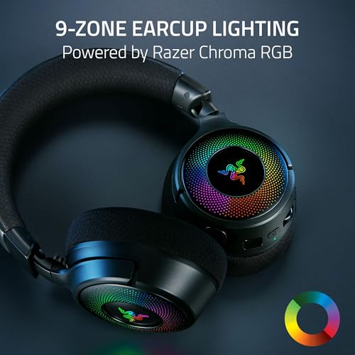 Razer - سماعة رأس لاسلكية للألعاب من ريزر كراكين V4 (3 اوضاع اتصال، مشغلات تراي فورس 40 ملم، إضاءة سماعات RGB 9، تعديلات المزج ومستوى الصوت، صوت THX) أسود