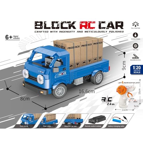 Generic - شاحنة بيك اب مكعبات بناء تعمل بجهاز تحكم عن بعد، 267 قطعة من مركبات البناء التي تصنعها بنفسك، لعبة ستيم قابلة لاعادة الشحن 2.4GHz للاطفال الاولاد والبنات من سن 6 سنوات فما فوق