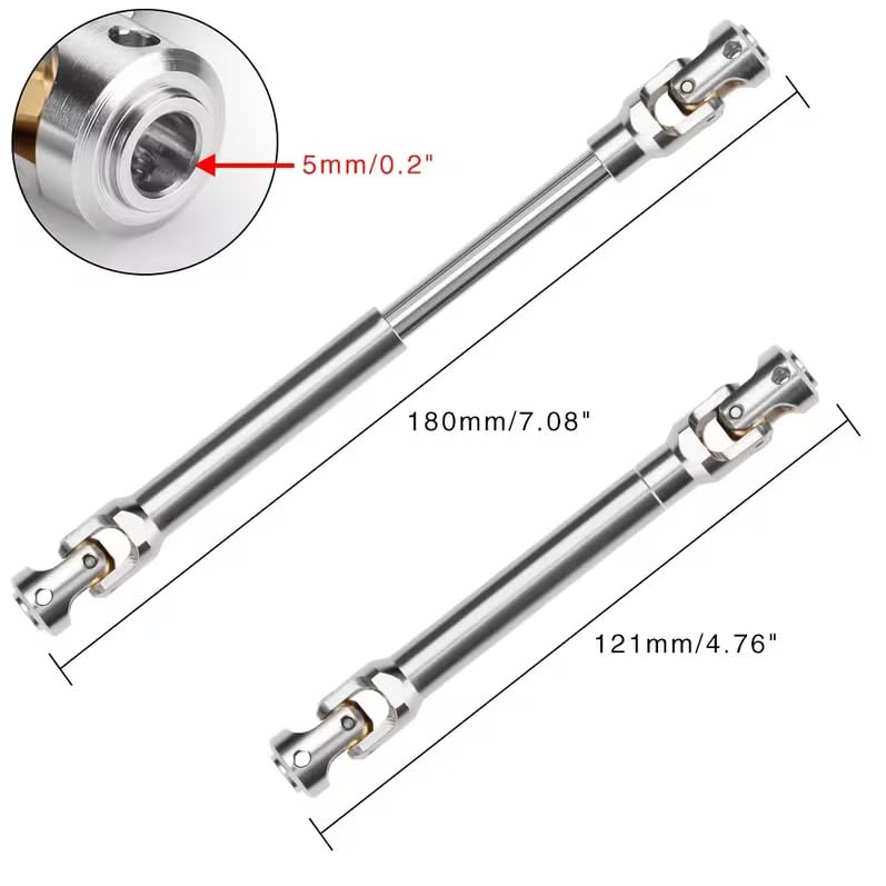 Generic - عمود محرك يعمل بجهاز تحكم عن بعد من الستانلس ستيل، عمود محرك سي في دي معدني بديل عالمي قطع غيار مطورة لـ 1/10 RC Crawler SCX10 90046 ريدكات الجيل الثامن، 121-180 ملم