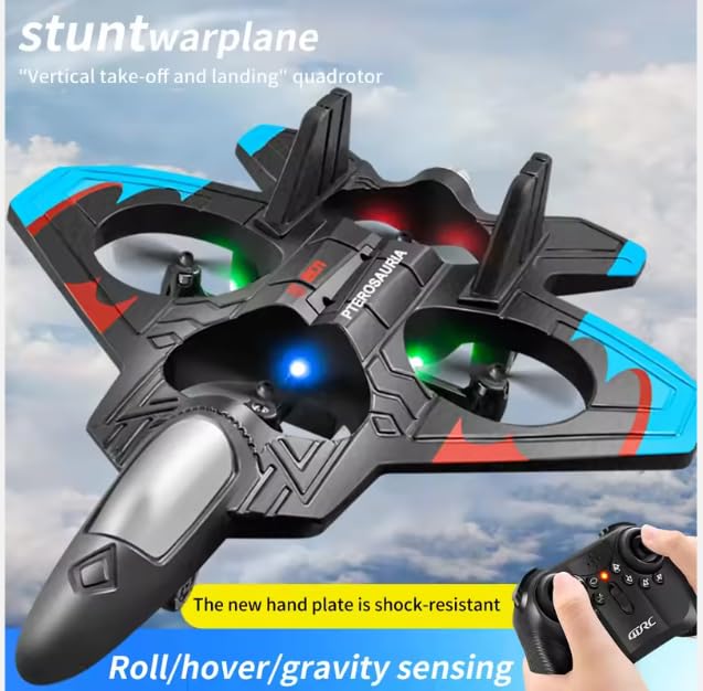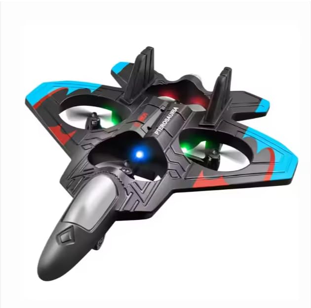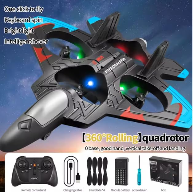 Generic - طائرة درون لعبه للاطفال مصنوعة من مواد مضادة للصدمات وآمنة للأطفال بجهاز تحكم عن بعد، تصميم طائرة مقاتلة، دوران 360 درجة، إضاءة LED، تردد 2.4 جيجاهرتز، بطارية قابلة للشحن مع كابل USB