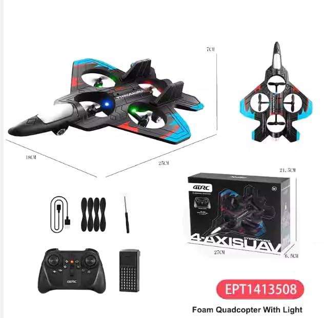- تصميم طائرة مقاتلة: درون بتصميم عصري على شكل طائرة مقاتلة مع إضاءة LED ملونة للطيران الليلي المثير