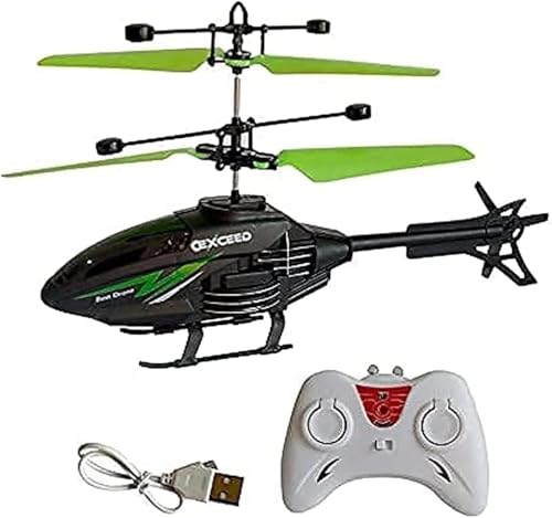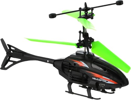 LC - طائرة هليكوبتر بجهاز تحكم عن بعد مزودة بقناتي تحكم وتشحن عبر منفذ USB، أسود وأخضر أو برتقالي