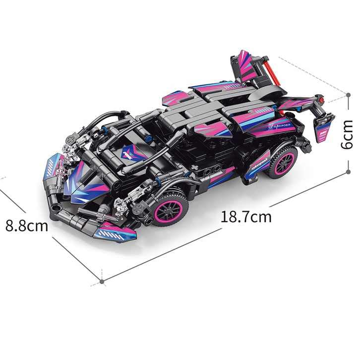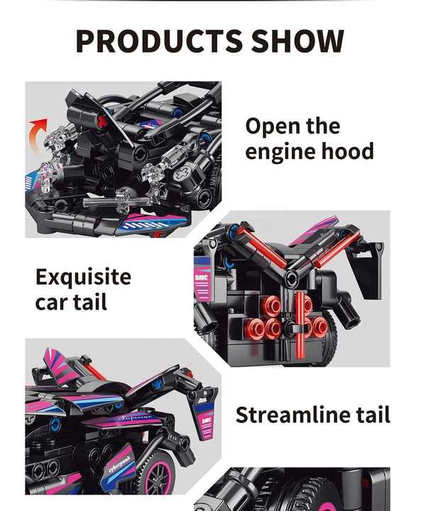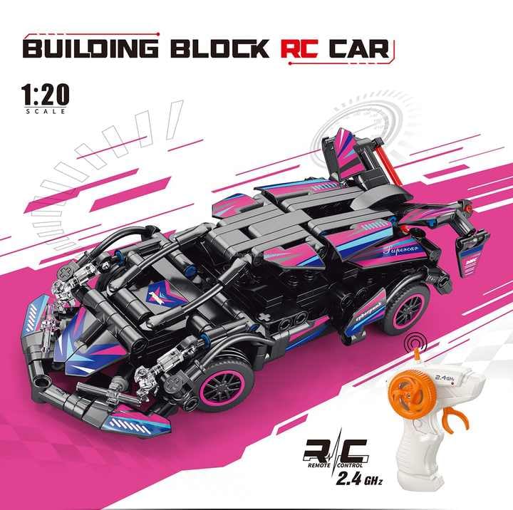 - مجموعة بناء سيارة سباق RC: تحتوي على 323 قطعة من البلوكات لبناء سيارة سباق رياضية بتصميم عصري وجذاب بألوان وردي وأسود