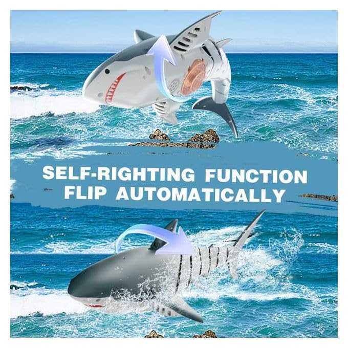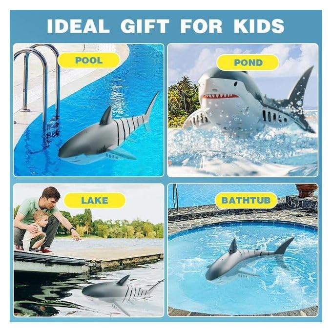 Generic - لعبة القرش بجهاز تحكم عن بعد للأطفال من عمر 14 سنة فما فوق - لون رمادي وأبيض