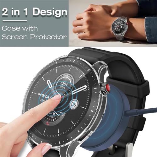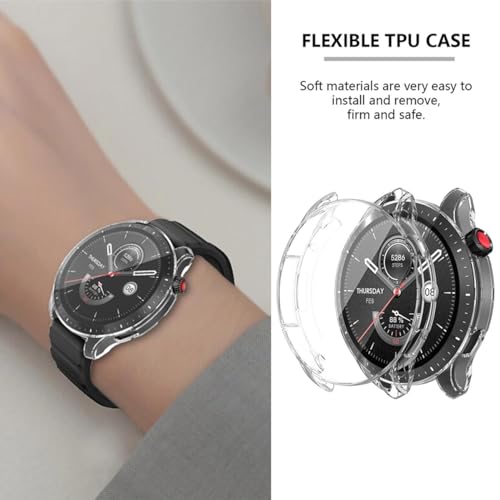 Rc-Z - جراب واقي شاشة لساعة امازفيت جي تي ار 4 الذكية، عبوة من قطعتين من البولي يوريثين الحراري الناعم، غطاء حماية كامل لساعة جي تي ار 4، شفاف