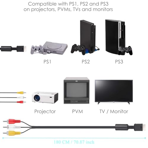 - 【التوافق】كابل صوت متوافق مع بلاي ستيشن 1، بلاي ستيشن 2، بلاي ستيشن 2 سليم وبلاي ستيشن 3. يُمكنك توصيل جهازك بالتلفزيون والشاشة بإدخال الكابل بمنفذ RCA ونقل بيانات الصوت والفيديو إلى وحدة تحكم البلاي ستيشن باستخدام الكابل، ثم يمكنك الاستمتاع بالألعاب.