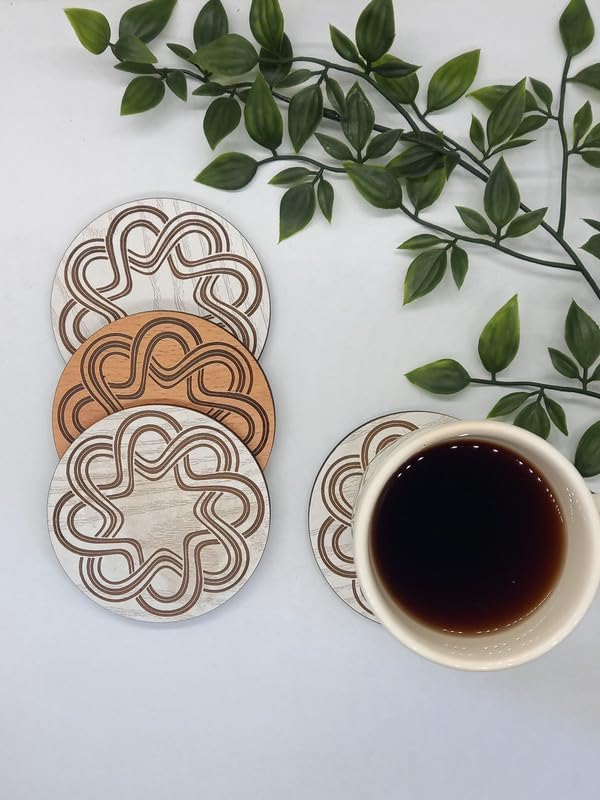 - قاعدة أكواب/ كوستر دائرية مقاس 9.5 سم، بحفر ليزر غائر