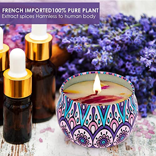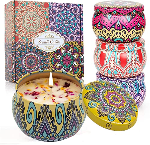 RCQD - مجموعة هدايا شموع معطرة مكونة من 4 علب مصنوعة من شمع الصويا الطبيعي مع بتلات وزيوت عطرية لتخفيف التوتر، 4 عطور للعلاج العطري والحمام واليوجا، مثالية للكريسماس وأعياد الميلاد من ار سي كيو دي