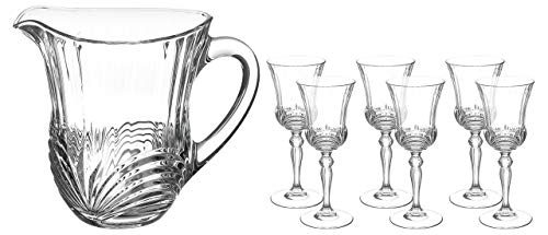 RCR - طقم مشروبات اوريا مكون من 7 قطع (شفشق + 6 كؤوس) من ار سي ار، زجاج، شفاف