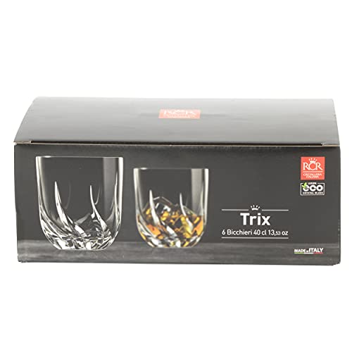 RCR - أكواب مياه تريكس كريستال بتصميم قصير من ار سي ار، مجموعة مكونة من 6 قطع