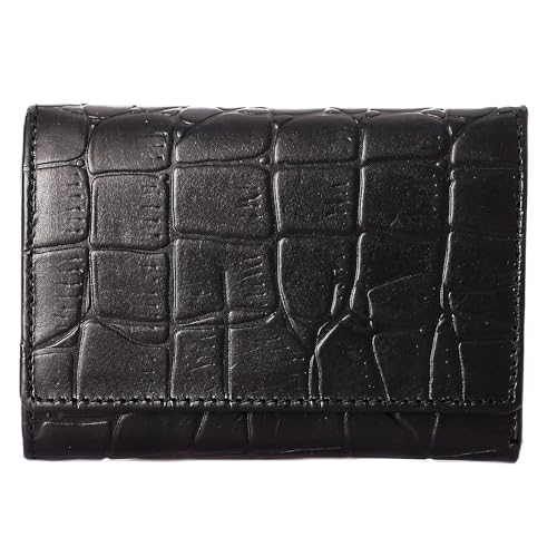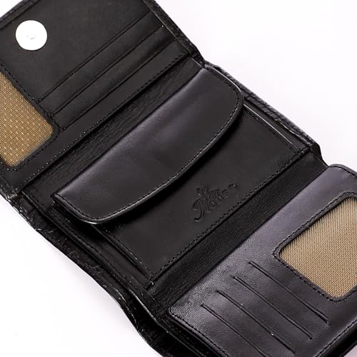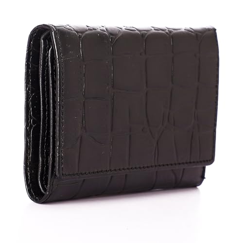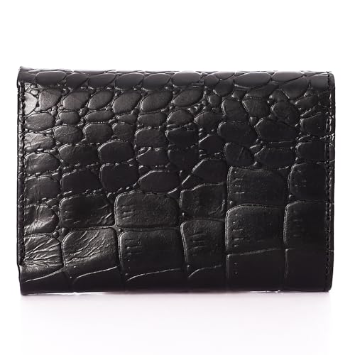 Generic - محفظة من جلد حقيقي مصنوعة من جلد البقر الأصلي للنساء، بتصميم عصري ثلاثي الطي باللون الأسود