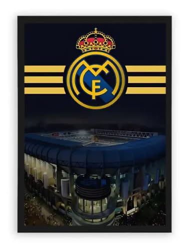 - تصميم فاخر: لوحة قماشية عالية الجودة تتميز بشعار نادي ريال مدريد لكرة القدم الأيقوني بألوان سوداء وذهبية مذهلة مع شعار التاج