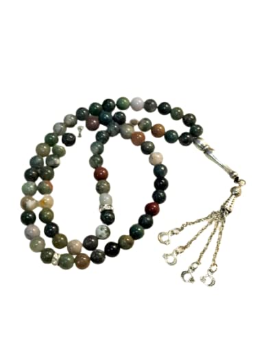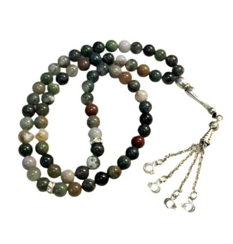 Generic - سبحة حجر عقيق طبيعي متعدد الالوان من ريل ناتشورال - 66 خرزة