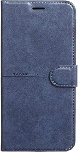 Generic - جراب من الجلد بتصميم محفظة قابل للطي متوافق مع موبايل ريلمي 5 وريلمي 6i وريلمي C3، أزرق، سيليكون