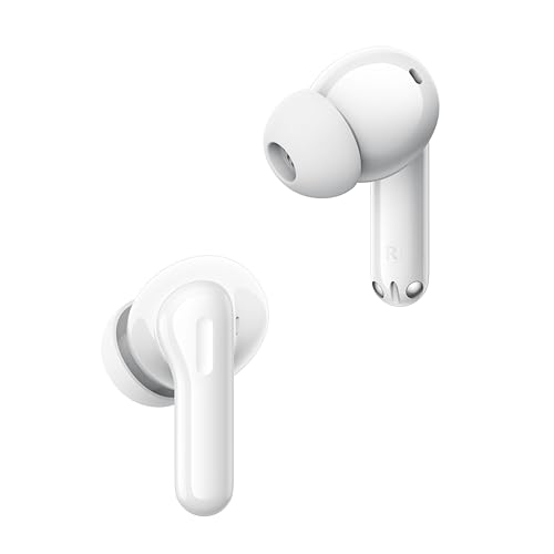realme - سماعة أذن T200 لاسلكية بلوتوث 5.3 بمشغل باس ديناميكي 13 ملم وعزل ضوضاء بالذكاء الاصطناعي وبطارية 40 ساعة وشحن سريع ومقاومة للماء بمعيار IPX5 وتحكم باللمس لأندرويد وiOS بلون أبيض ثلجي من ريلمي