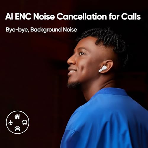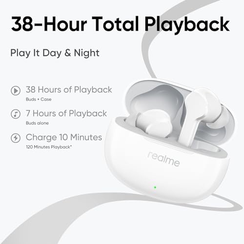 realme - سماعات داخل الأذن ترو T110 لاسلكية من ريلمي مشغل صوت باس ديناميكي 10 ملم بخاصية إلغاء الضوضاء بتقنية الذكاء الاصطناعي اي ان سي لون أبيض بوب